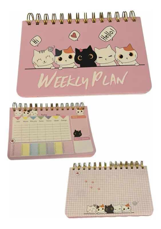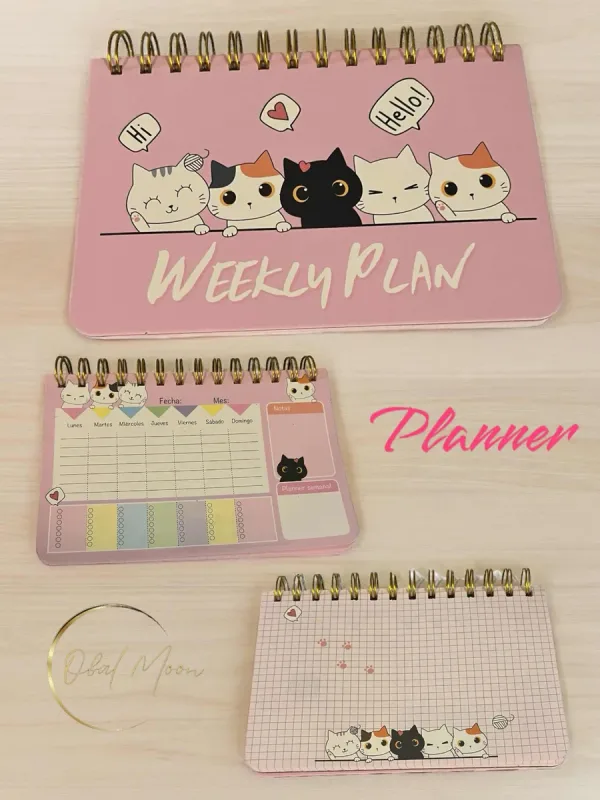 Obal Moon tiene para ti un bello Planner con espiral diseño Kawaii gatito, con una bella plana semanal para ordenar tus asuntos importantes y la otra con un diseño para destacar genéricamente.